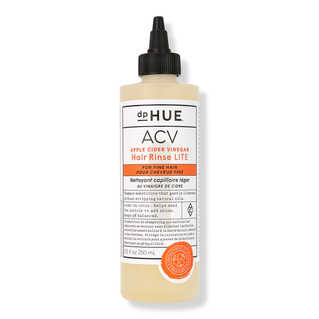 dpHUE's Apple Cider Vinegar Hair Rinse Lite substitute for fine hair. Gently cleanses and removes impurities without stripping hair color and natural oils key to scalp and hair health.