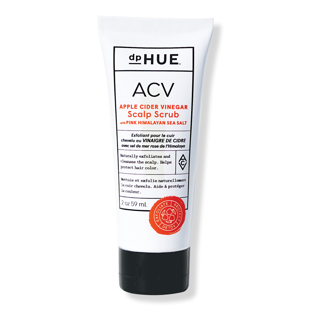 dpHUE Apple Cider Vinegar Scalp Scrub with Pink Himalayan Sea Salt naturally exfoliates the scalp, removing product build-up, impurities, and dead skin cells.