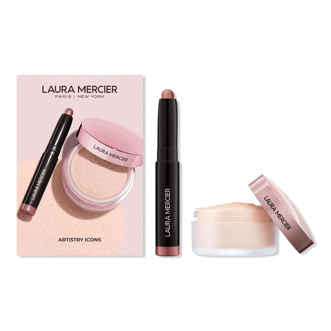 A limited edition Laura Mercier set that contains a mini Caviar Stick Eyeshadow in shade Strike a Rose and Mini Translucent Loose Setting Powder Tone-Up in Rose.