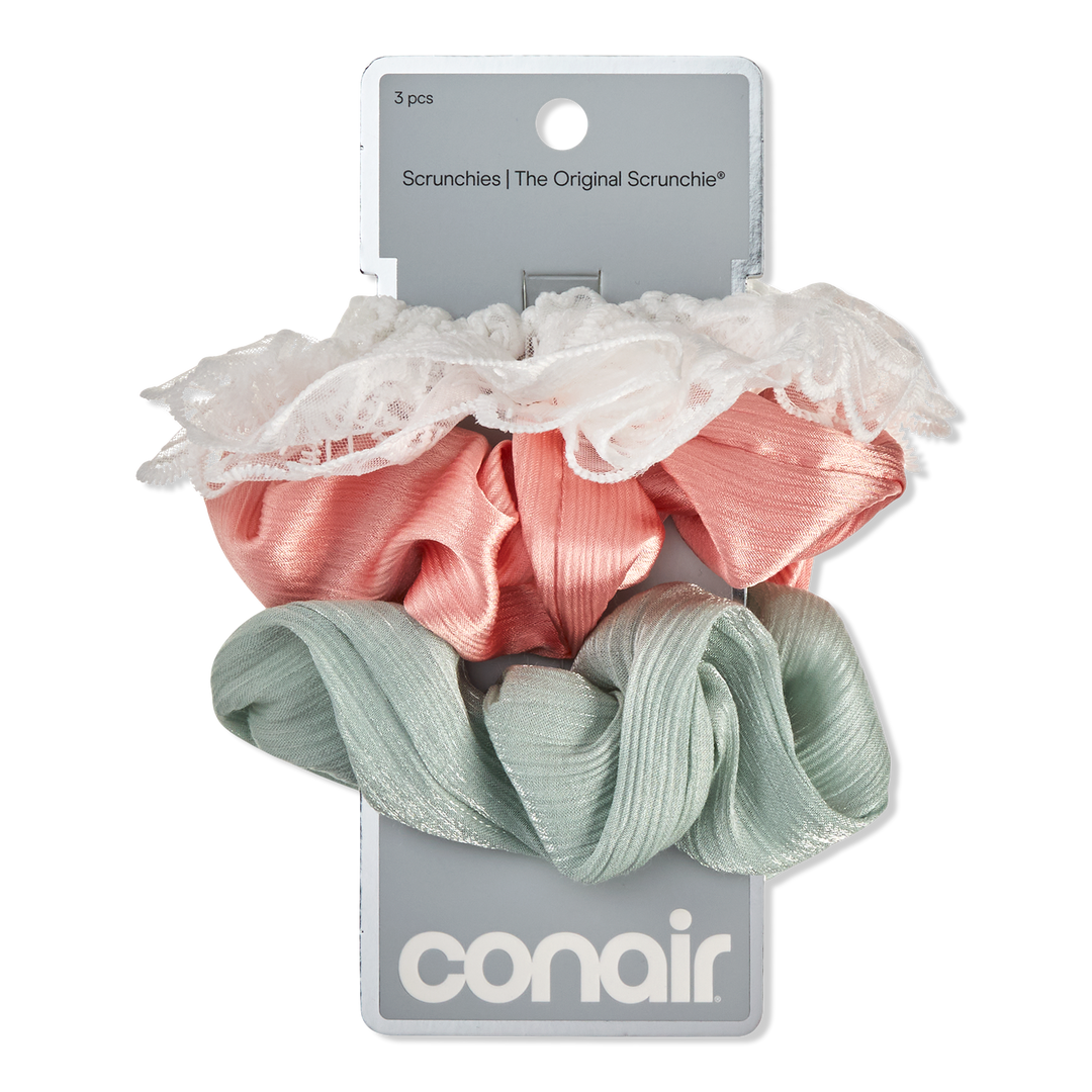 Make a statement with the Conair Original Scrunchie 3-pack in assorted textures. Designed with three different fabrics, these versatile scrunchies make it easy to switch up your look while keeping hair comfortably secured.