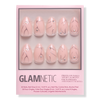 Remove any previously applied nail polish. Wash and dry hands. Gently push back cuticles using the cuticle stick and sanitize nails with alcohol pads. Size Glamnetic nails by placing on finger and select sizes best suited for your natural nails. Apply an even layer of glue to natural nails and the back of Glamnetic nails. Align Glamnetic nails with cuticle line and apply at a downward angle. Press down firmly and hold for 10-20 seconds. Apply all 10 nails and if needed, file or clip to achieve desired shape.
