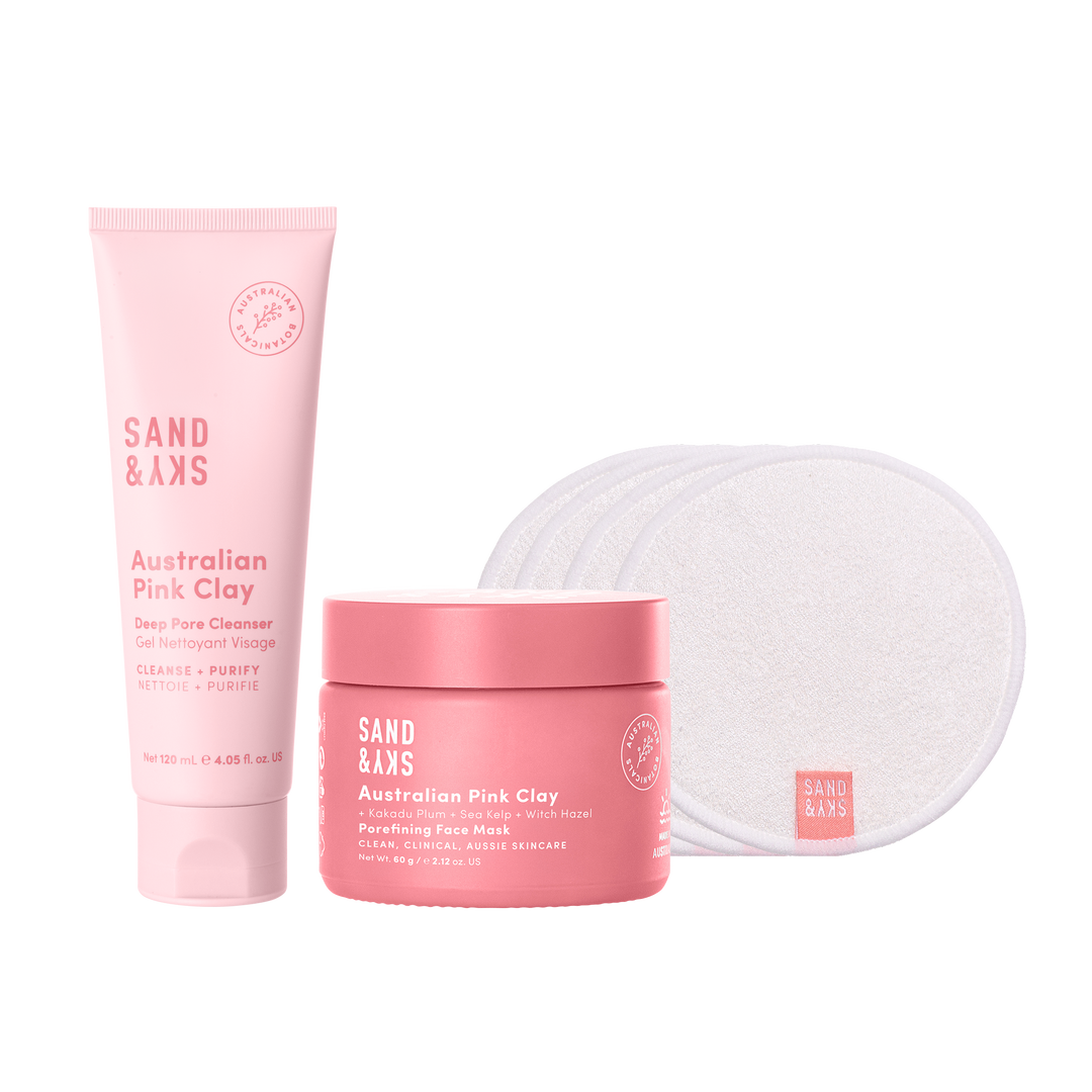 A three-piece deep cleansing kit for refined pores and clearer skin. The Deep Pore Cleanser removes impurities, the Porefining Mask tightens pores in 10 minutes and reusable cleansing wipes gently prep skin.