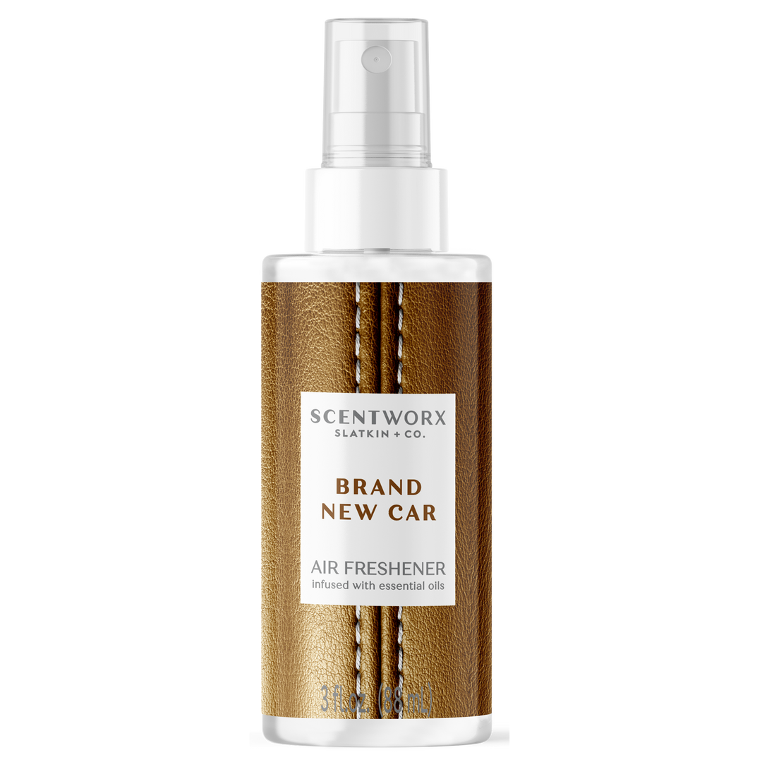 Brand New Car Air Freshener Spray is made with luxury essence of a new car captured with fresh leather, oakmoss, musk, and a touch of vanilla bean in a concentrated spray for any occasion