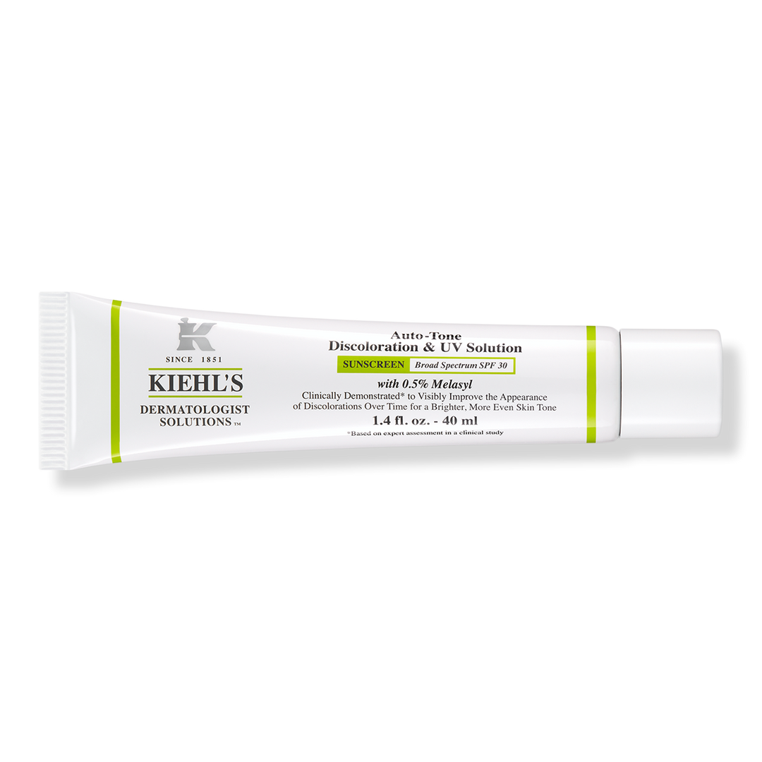 The Kiehl's Since 1851 Auto-Tone Discoloration & UV Solution SPF 30 works to harmonize the look of skin's natural tone by visibly reducing dark spots, dark patches, and post-blemish marks.