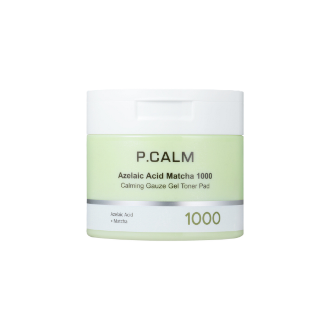 - Azelaic Matcha Calming Complex – P.CALM Azelaic Acid Matcha 1000 Calming Gauze Gel Toner Pads combine azelaic acid and antioxidant-rich matcha to help calm sensitive skin, balance oil, and support a smoother-looking complexion.