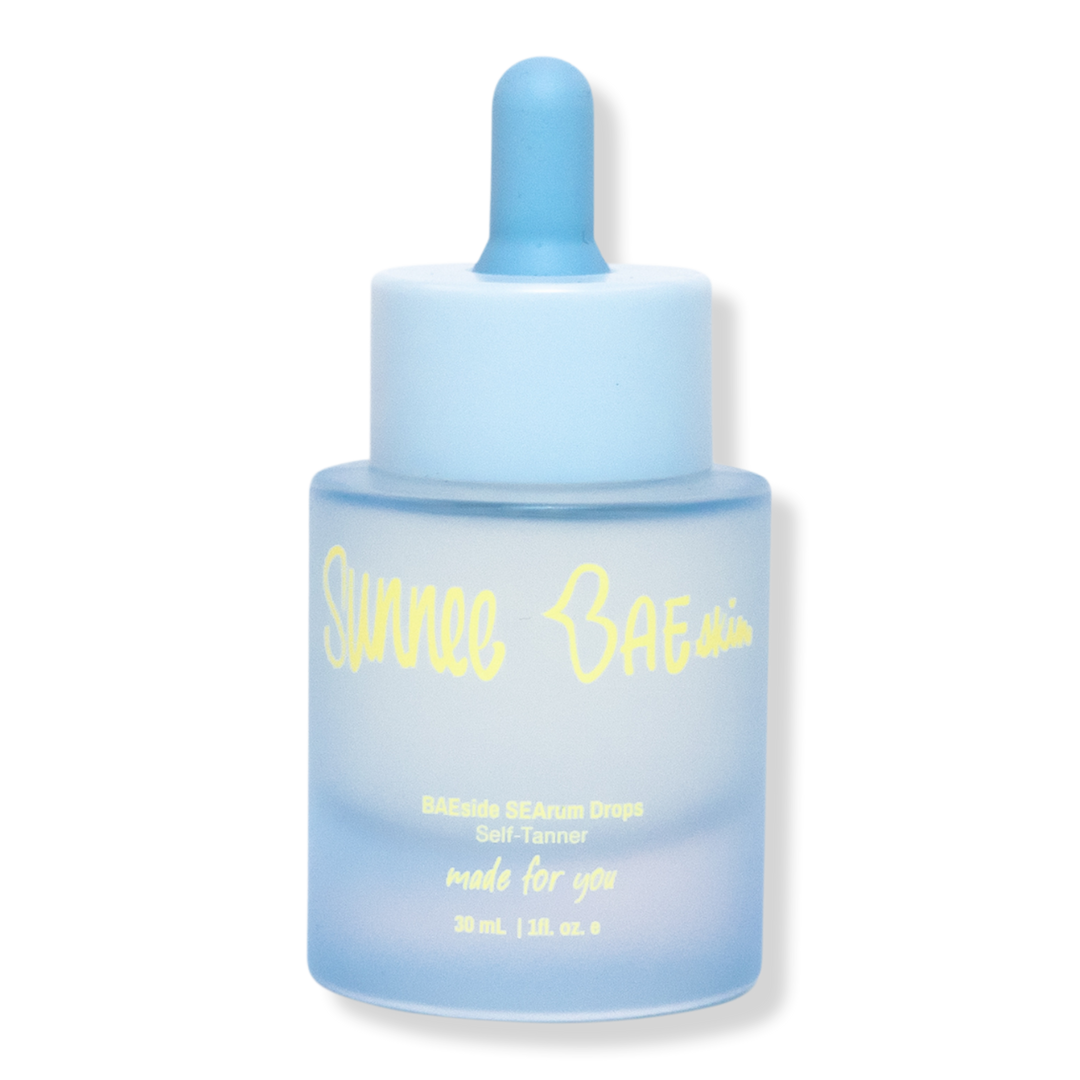 Sunee BAEskin's BAEside SEArum Drops are infused with blue-green algae, sea kelp, wakame, and moringa seed oil to hydrate and tan your skin. Apply alone or mix with your favorite skincare for a radiant look. Add more drops for a bolder tan that develops in 4-6 hours. Remember to wash your hands!