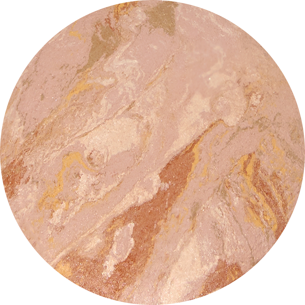 - Marbleized pigments with luminous pearl create a glowing, balanced finish