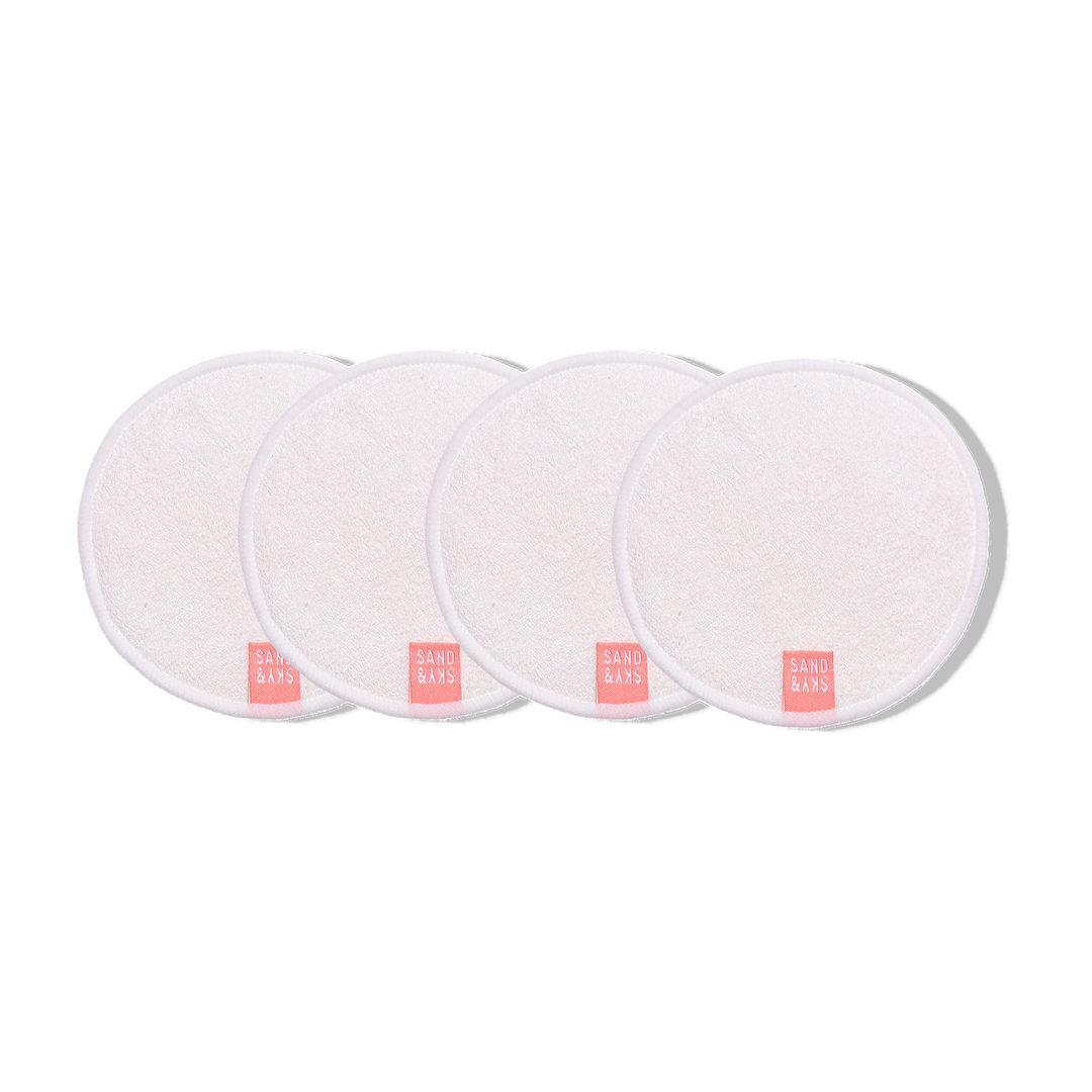 A set of 4 reusable bamboo cleansing pads in a handy pouch. Made from 80% bamboo and 20% cotton, these eco-friendly pads gently cleanse skin while reducing waste. Machine washable.