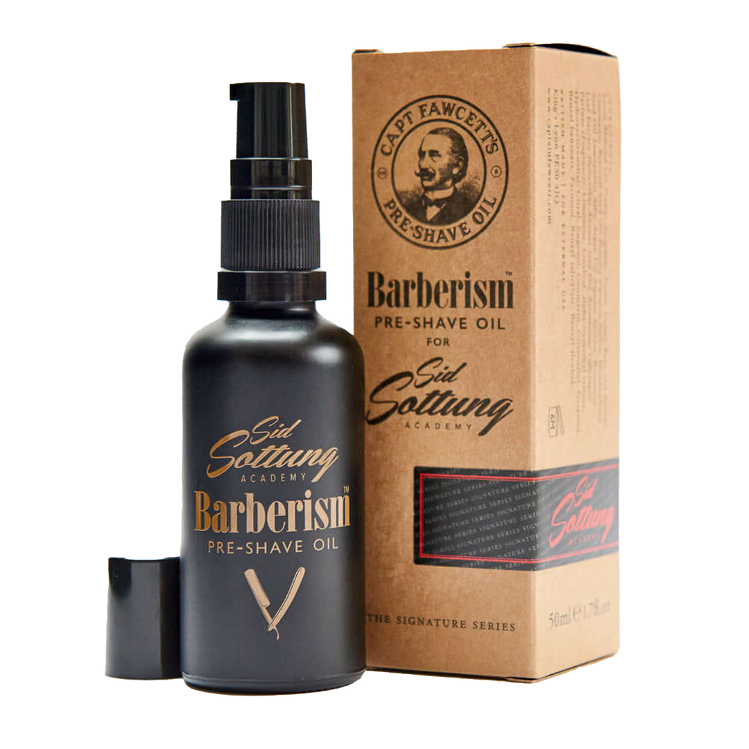 Captain Fawcett's Barberism collaboration with barber Sid Sottung has produced a most remarkable Pre-Shave Oil. Six oils with moisturising, glide & nourishing properties have been expertly blended with Sid's timeless, elegant scent. Handmade in small batches by the Captain's master blender.