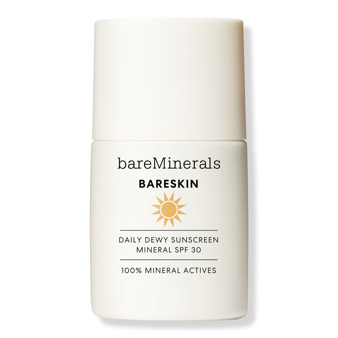 bareMinerals' BARESKIN Daily Dewy Sunscreen Mineral SPF 30 is an ultra-light mineral sunscreen with broad-spectrum SPF 30 that hydrates, protects, and perfects skin, delivering everyday wear with little to no white cast.