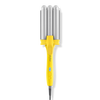 Section hair into clean, 3-inch (7.5 cm) sections. Hold the tool horizontally, press to open the clamp and capture the top of the hair section between the barrels and clamp. Release clamp and hold in place for several seconds until desired definition is achieved. Open the clamp and move down the section. Repeat until the whole section is waved. For a deeper, more defined wave, keep the section clamped a few seconds longer.