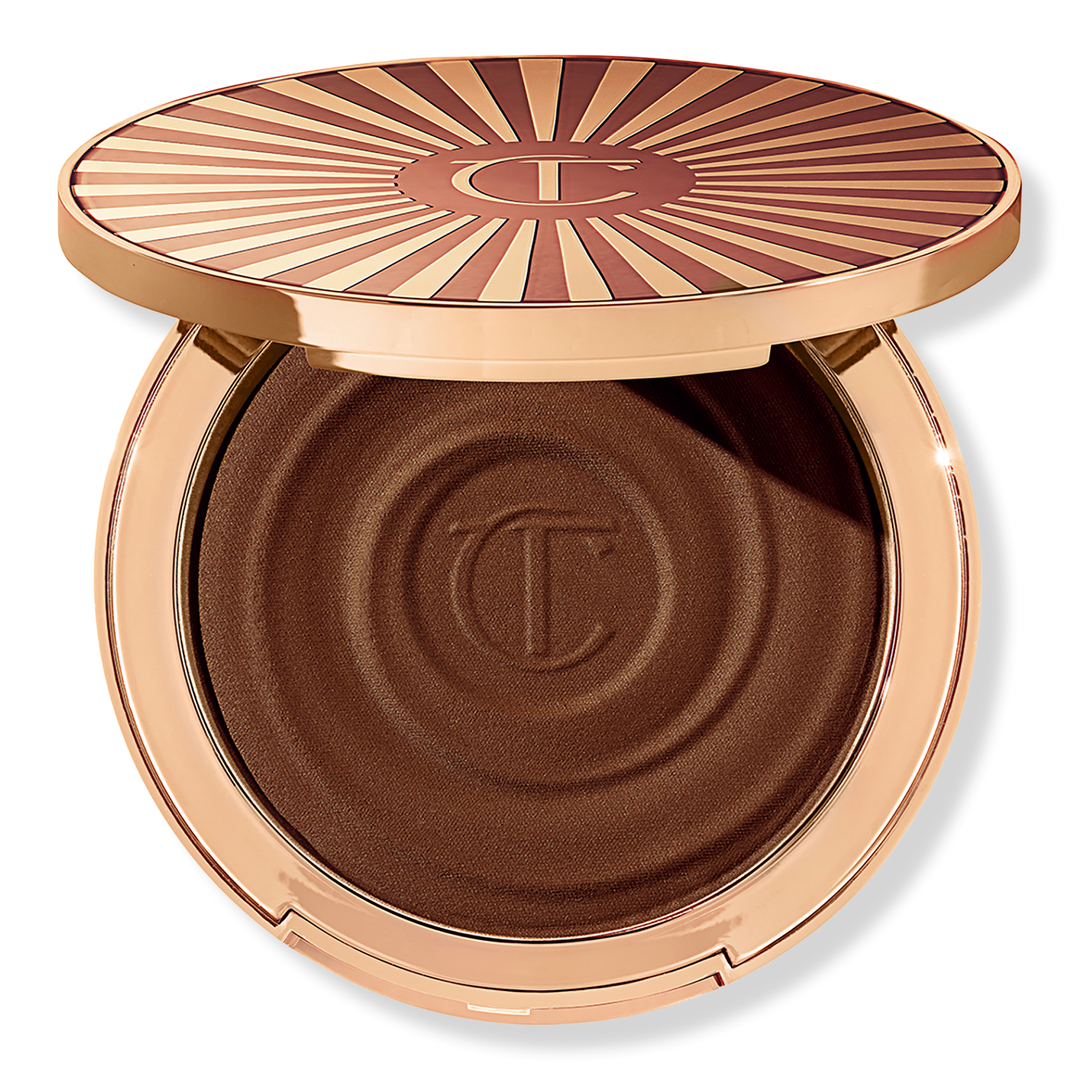 Charlotte Tilbury's Beautiful Skin Sun-Kissed Glow Cream Bronzer is a 16-hour wear cream bronzer in 4 beautiful sun-kissed shades for face and body that blurs skin, hydrates with hyaluronic acid, and is sweatproof.
