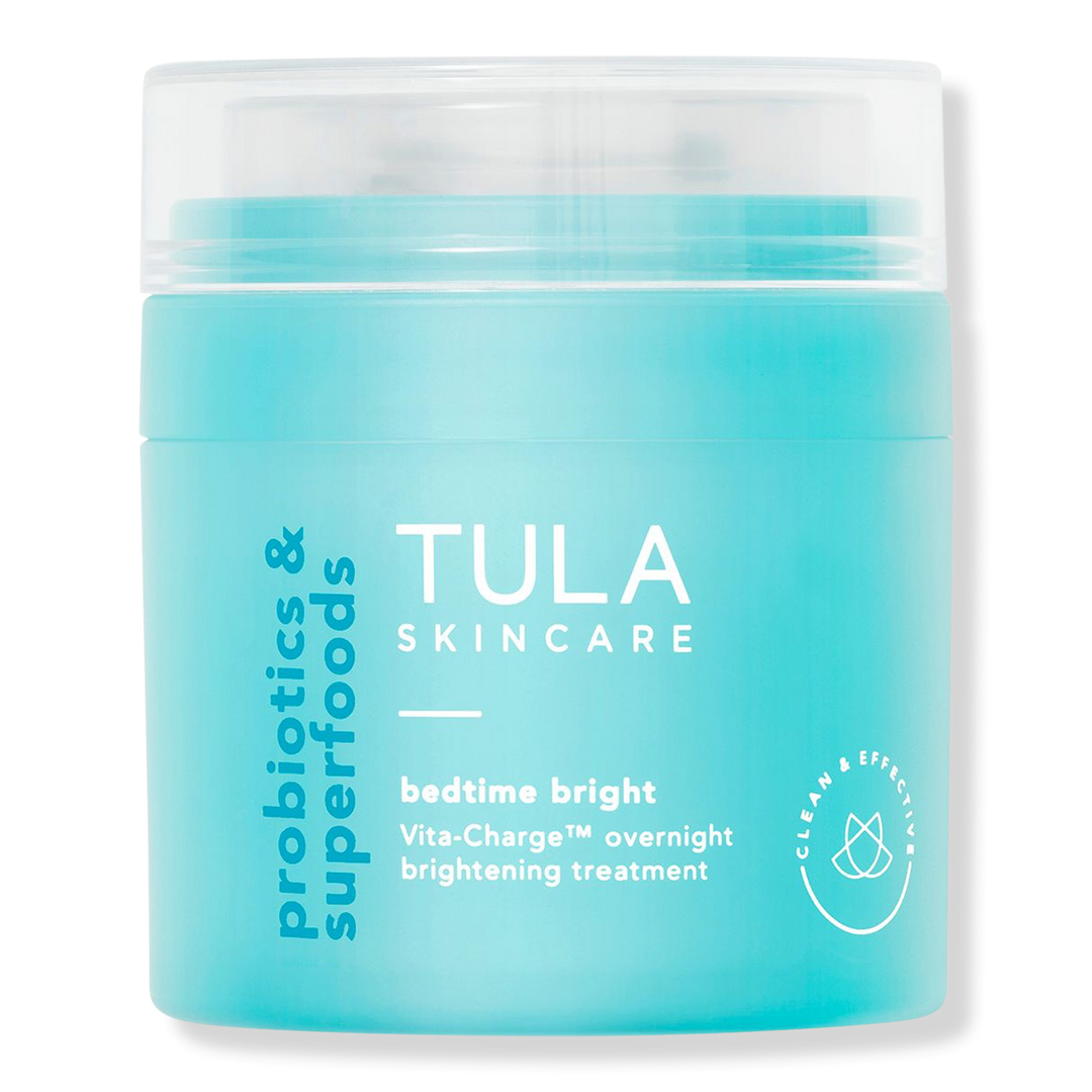 TULA's Bedtime Bright Vita-Charge Overnight Brightening Treatment acts as a cocoon for skin, locking in moisture to seal your skincare. It's infused with 5 essential vitamins & minerals (including Vitamin C & niacinamide) to help even skin tone & texture.