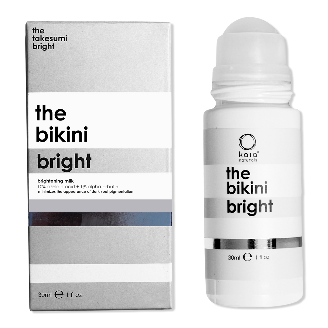 kaia naturals The Bikini Bright Brightening Milk is a 4-in-1 natural, gentle, milky treatment that helps brighten the appearance of dark spot pigmentation, helps soothe irritation and redness, help manage ingrown hairs and odor often caused by hair removal.