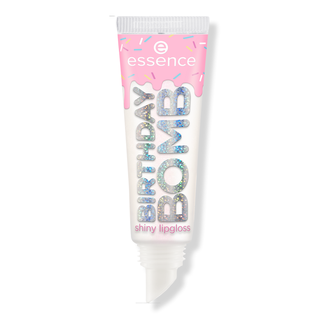 Celebrate every day with Essence Birthday Bomb Shiny Lipgloss! This sheer, pink-shimmer gloss delivers a super glossy, non-sticky finish with a sweet birthday cake scent.