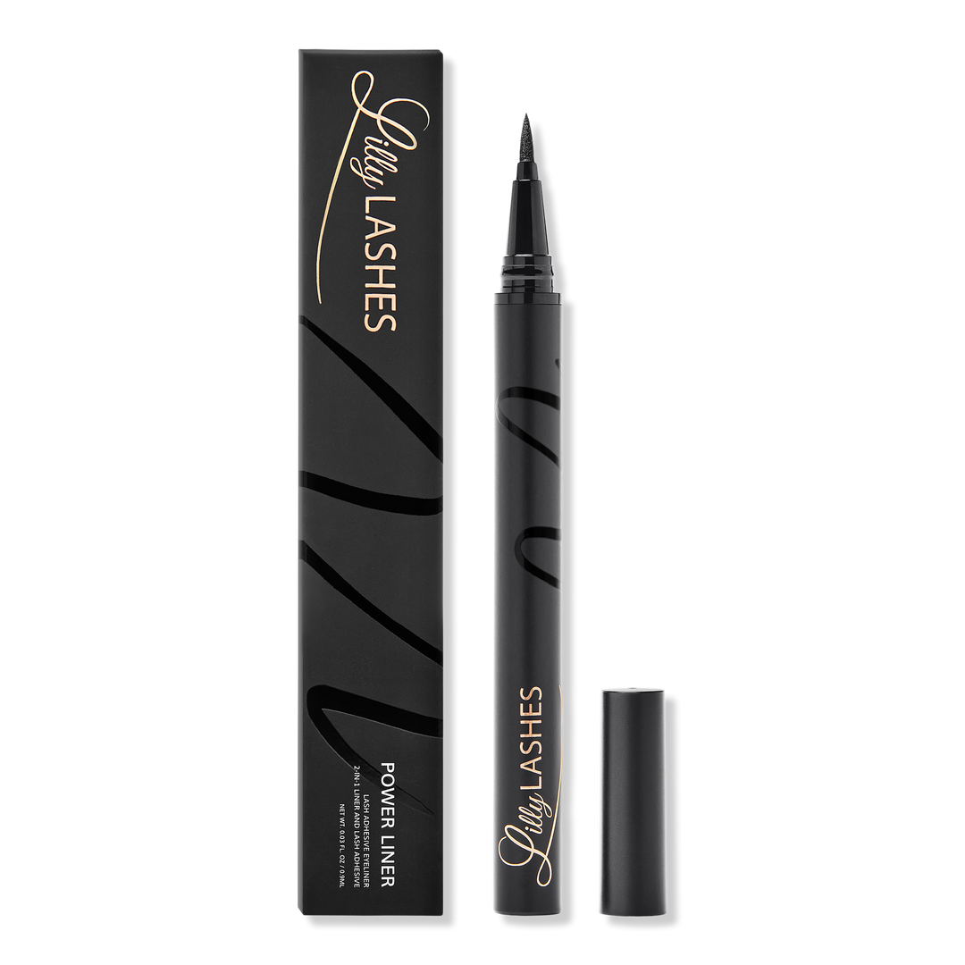 Lilly Lashes' Power Liner Lash Adhesive is a dual benefit, stay-all-day lash adhesive and eyeliner in one. The innovative formula combines the power of extra tacky, latex-free lash adhesive with bold, black pigmented liquid eyeliner in an easy to apply, mess-free felt tip pen.