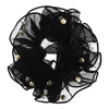 Soft, sheer, and seriously stylish. This scünci® by Conair® Black Scrunchie with Faux Pearls floats with flouncy layers for a look that’s pure elegance.