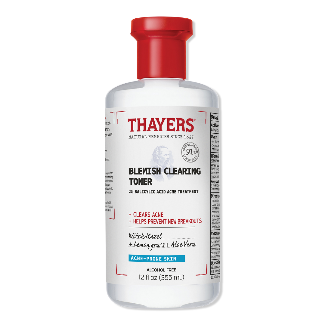 Thayers Blemish Clearing Toner with 2% Salicylic Acid gently exfoliates to clear acne blemishes, blackheads, and whiteheads while preventing breakouts.