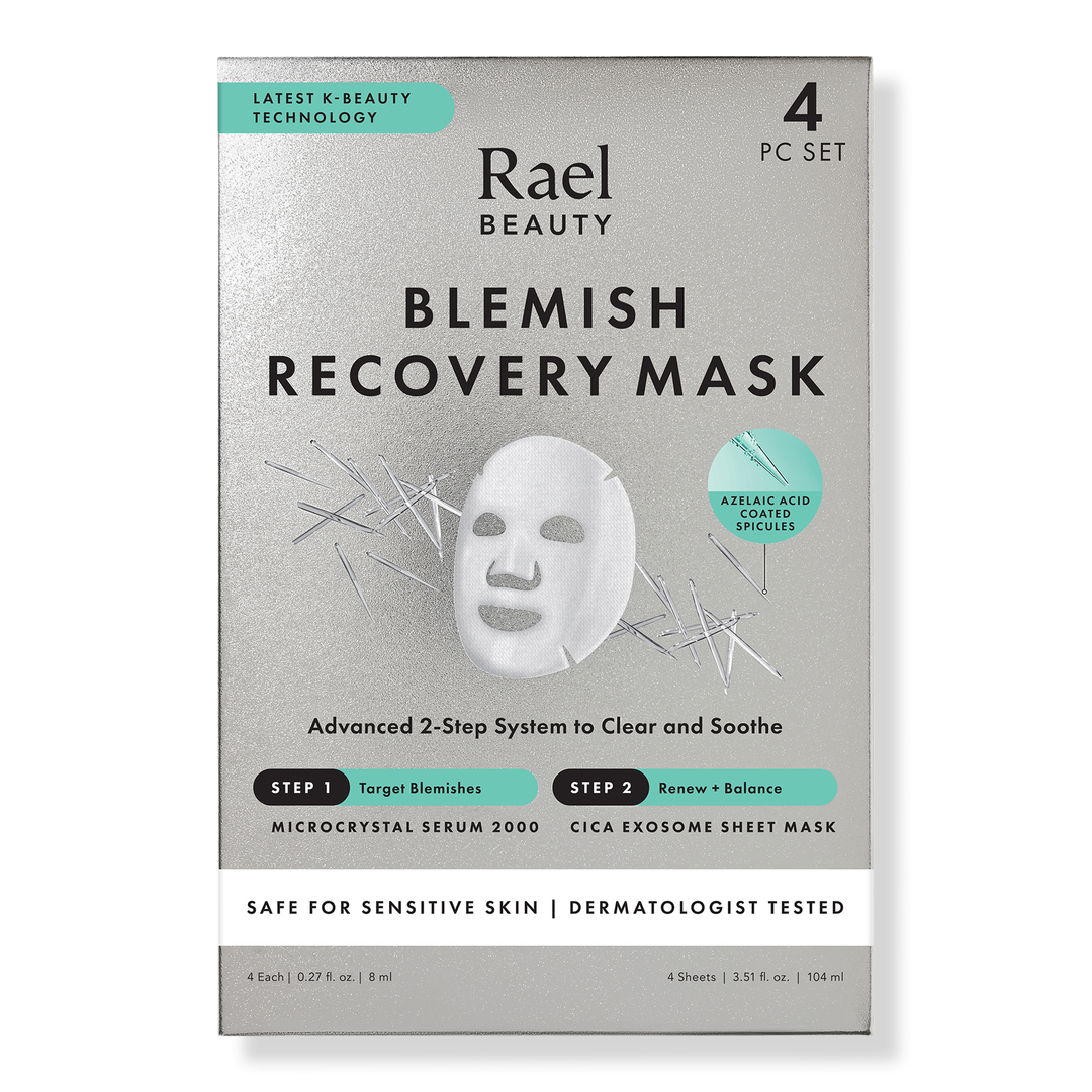 Rael Blemish Rescue Recovery Mask delivers soothing hydration and surface-level renewal in a targeted 2-step treatment. Powered by Microcrystals, Ectoin, Allantoin, and multi-weight Hyaluronic Acid, it helps support the appearance of clearer-looking, balanced skin - no appointment needed.