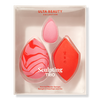 Use sponge damp for a dewy finish or dry for a matte finish. Saturate sponge with water and squeeze out remaining excess. Apply your favorite cream or liquid product using soft dabbing motions until fully blended out. Pro tip: Use the angled sides for application and blending and the sharp edge for precision sculpting. Use the mini sponge for blending around nose and eye. Care: To reuse sponge, wash with mild soap and rinse thoroughly with warm water. Let sponge air dry.