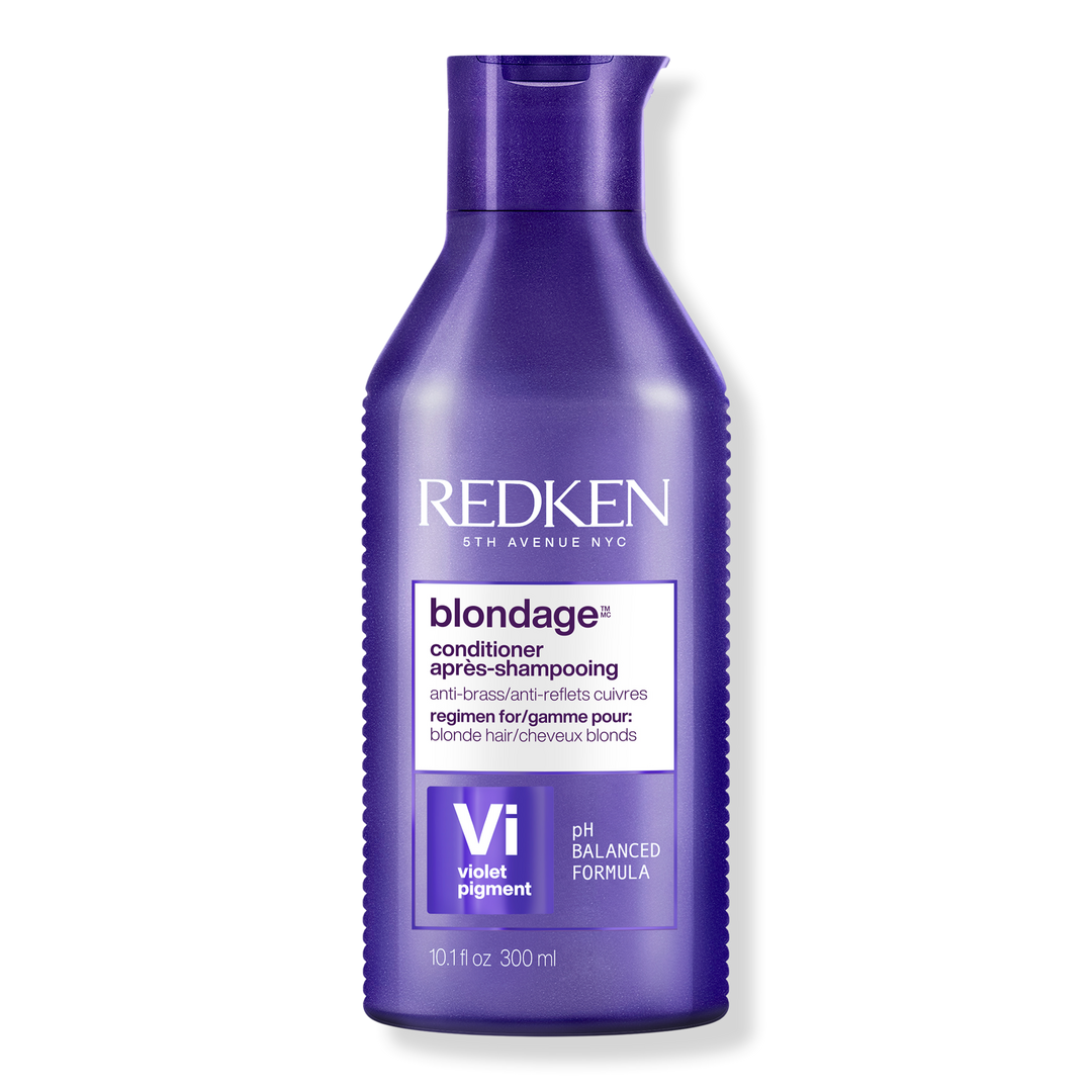 Redken's Blondage Purple Conditioner is a color-depositing and protecting purple conditioner for blonde hair. The Triple Acid Protein Complex strengthens and pure violet pigments remove unwanted brassiness for cool, bright hair color. Formally known as Color Extend Blondage Purple Conditioner.