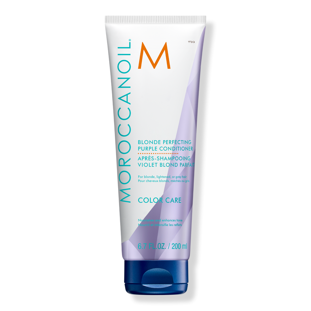 Moroccanoil Blonde Perfecting Purple Conditioner is a nourishing, tone-correcting conditioner that helps fight brassiness in blonde, lightened brunette, and gray hair.