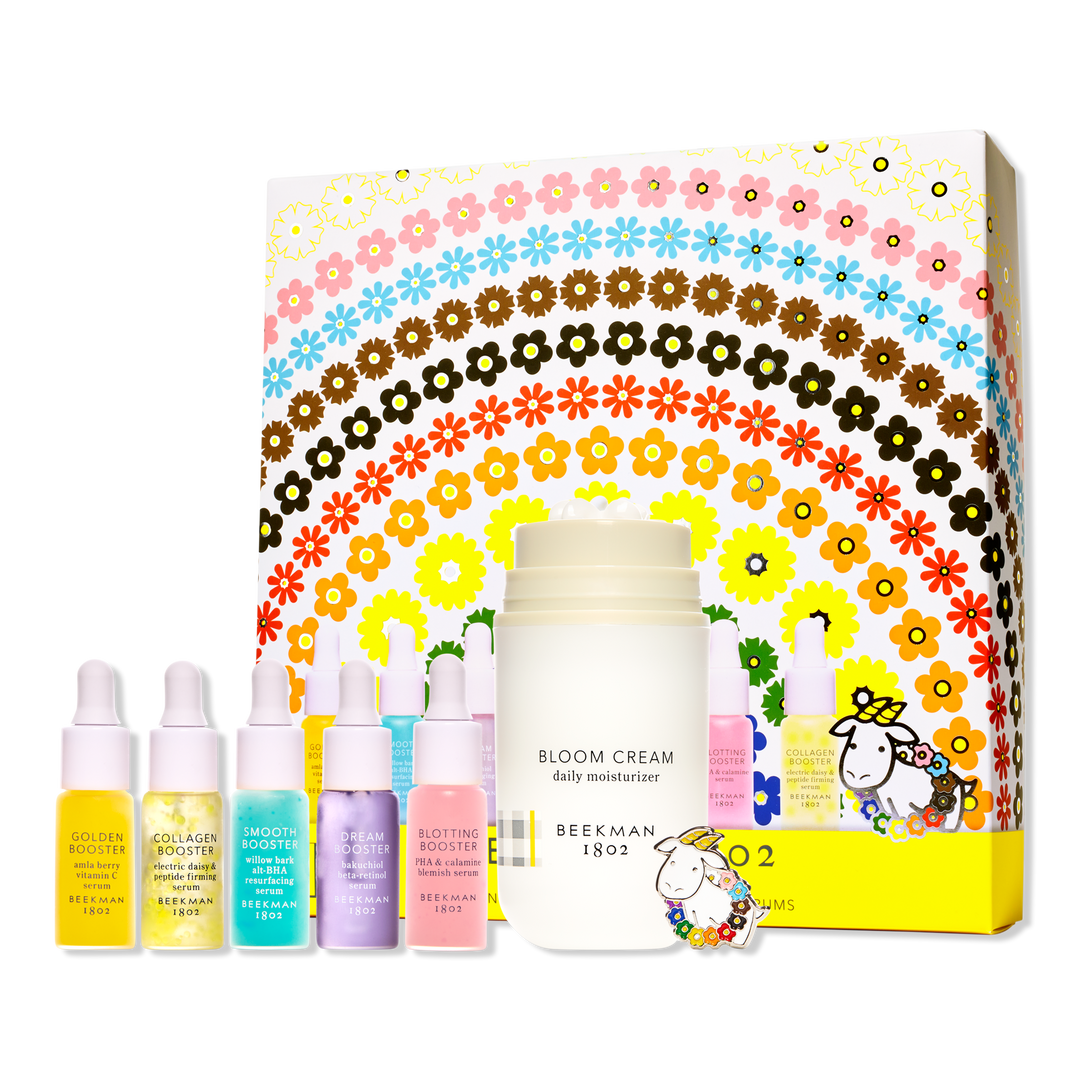 Beekman 1802's Bloom with Pride Skincare Set features their bestselling Bloom Cream, plus a rainbow of booster serums that each target a unique skin concern.