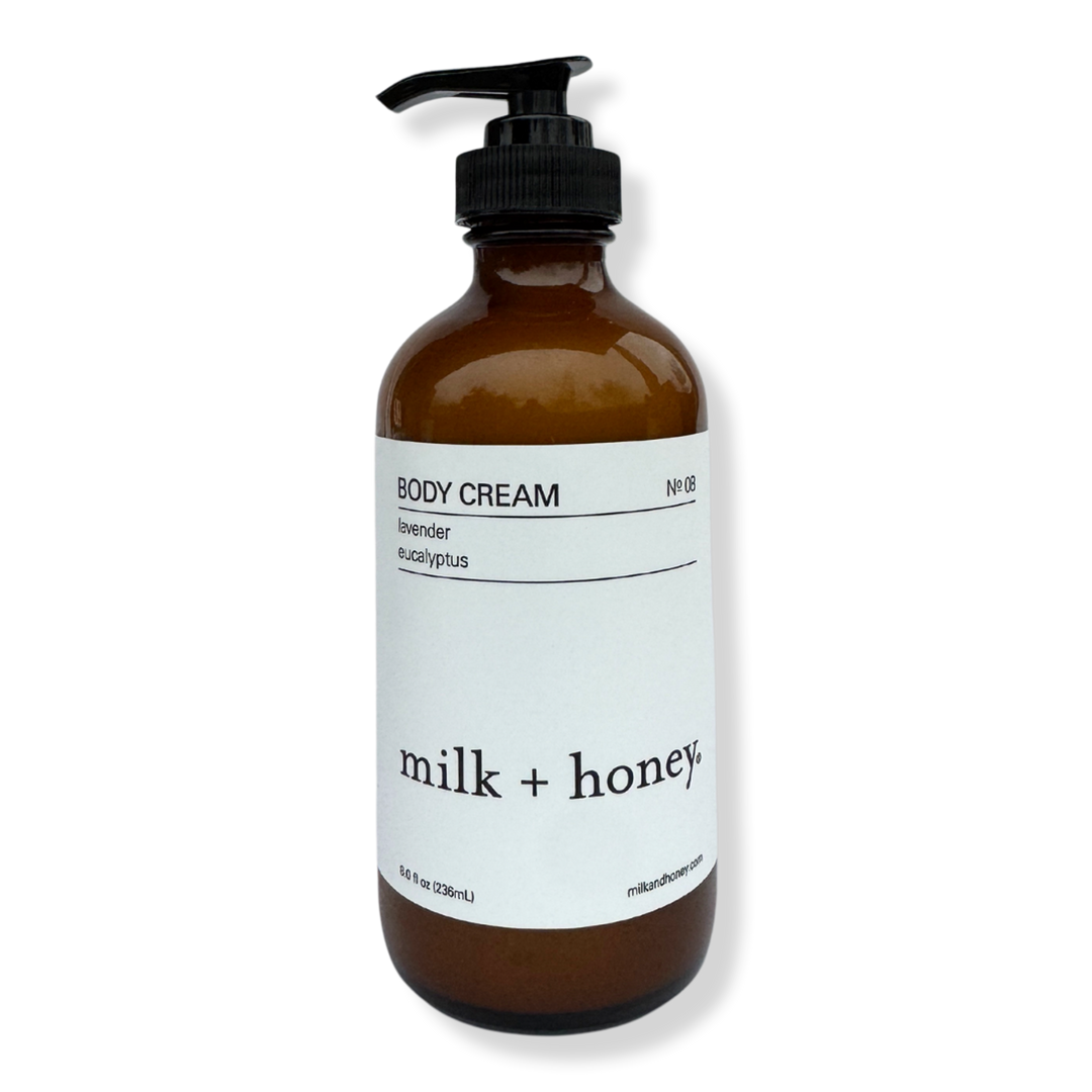 This luxuriously rich cream delivers deep hydration without an oily finish. milk + honey's Body Cream is packed with antioxidants, an uplifting essential oil blend, and good-for-you ingredients such as aloe juice, shea butter, and coconut oil.