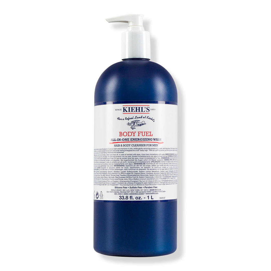 Kiehl's Since 1851 Body Fuel All-In-One Energizing Wash is an invigorating hair and body wash for men for head-to-toe cleansing.