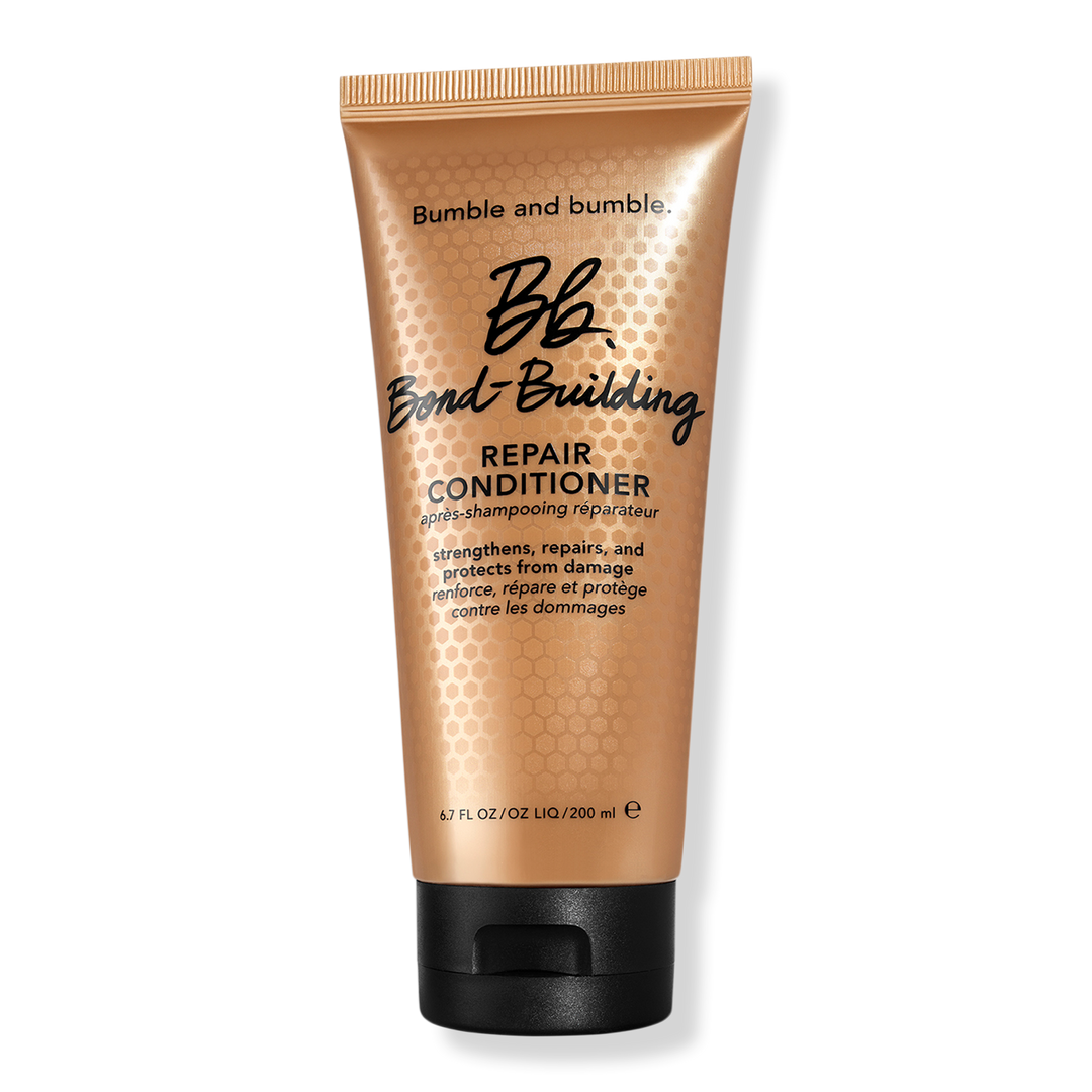 Bumble and bumble Bond-Building Hair Repair Conditioner, powered by their Honey Bond-Building Complex, repairs hair from cortex to cuticle. It works to build new bonds to strengthen strands and protect against future damage. Plus, it instantly detangles and reduces frizz.