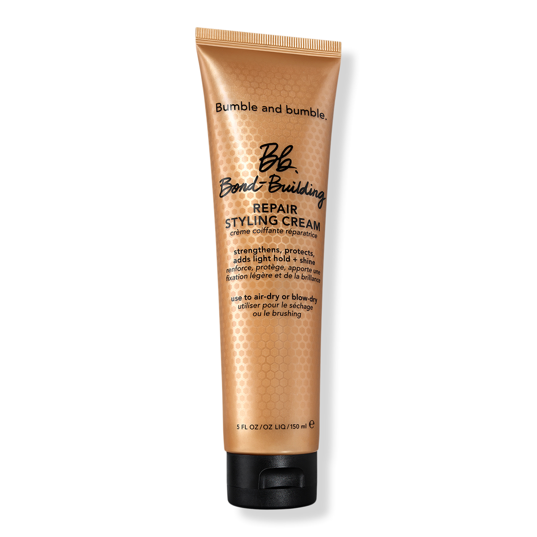 Bumble and bumble Bond-Building Hair Repair Styling Cream, powered by their Honey Bond-Building Complex, repairs damage from the cortex to the cuticle. This heat protective styling cream makes hair 3x stronger instantly and prevents formation of split ends by 61% vs. untreated hair.