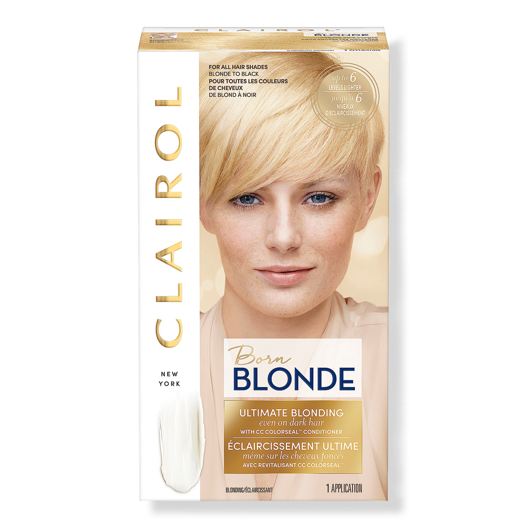 Clairol Born Blonde Hair Color provides natural-looking blonde results from roots to ends, even on dark hair.