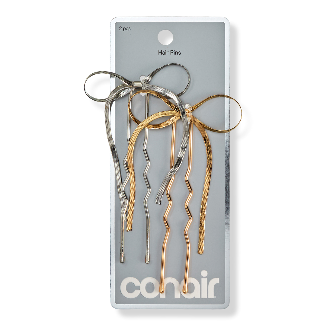 Beautifully crafted Conair U-shaped hair pins feature elegant bow accents in silver-tone and gold-tone metal. Designed to slide easily into hair, they provide a secure, discreet hold that lasts all day.
