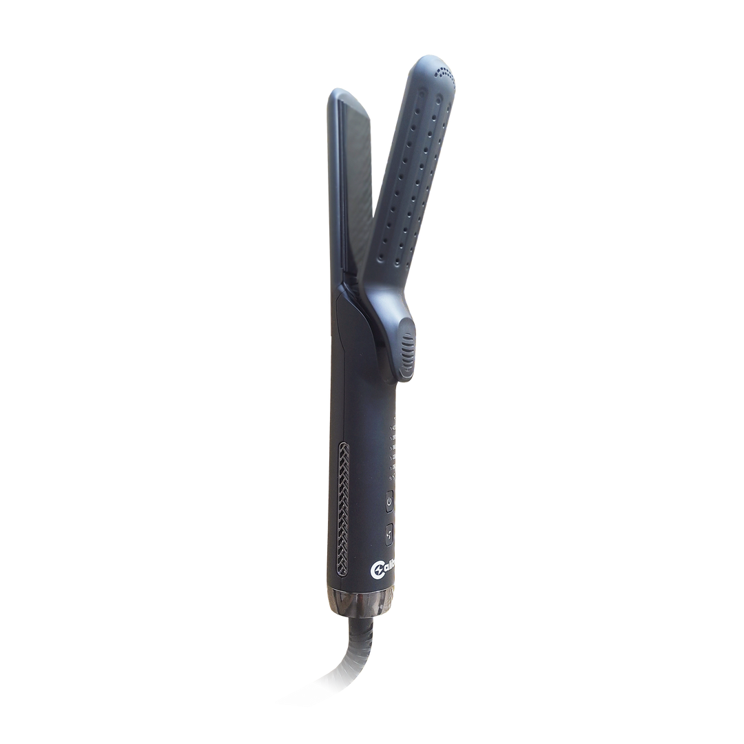 Style with less heat using the Breeze 2 in 1 Cool Air Styling Iron. Cool Air + Heat Technology sets styles quickly while minimizing heat exposure. Switch between straightening and curling with ceramic plates, 15-second heat-up, and 280-430°F adjustable temperature.