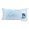 Swoon-worthy King satin pillowcase featuring an elegant, Bridgerton-inspired toile print on one side and solid blue on reverse.