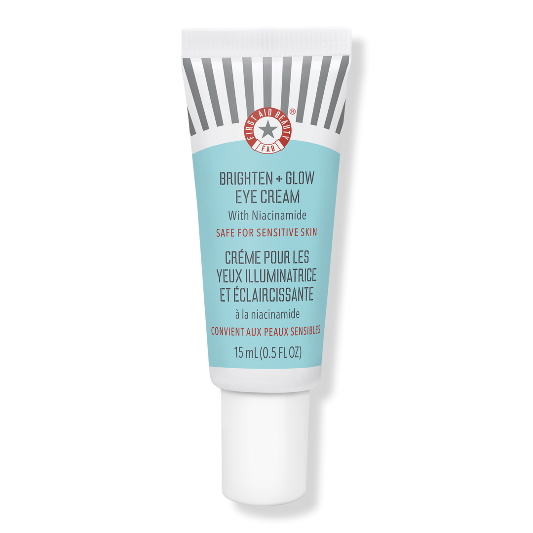 First Aid Beauty's Brighten + Glow Eye Cream with Niacinamide hydrates to gradually brighten and help reduce the appearance of dark circles over time.