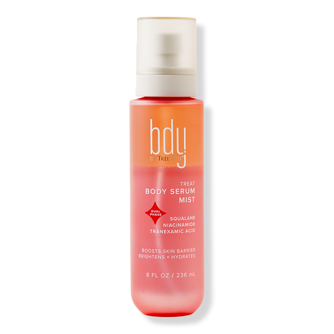 bdy. Brightening Dual Phase Body Serum Mist with Niacinamide + Squalane is a silky, non-greasy serum mist that helps leave skin soft, dewy, and illuminated.
