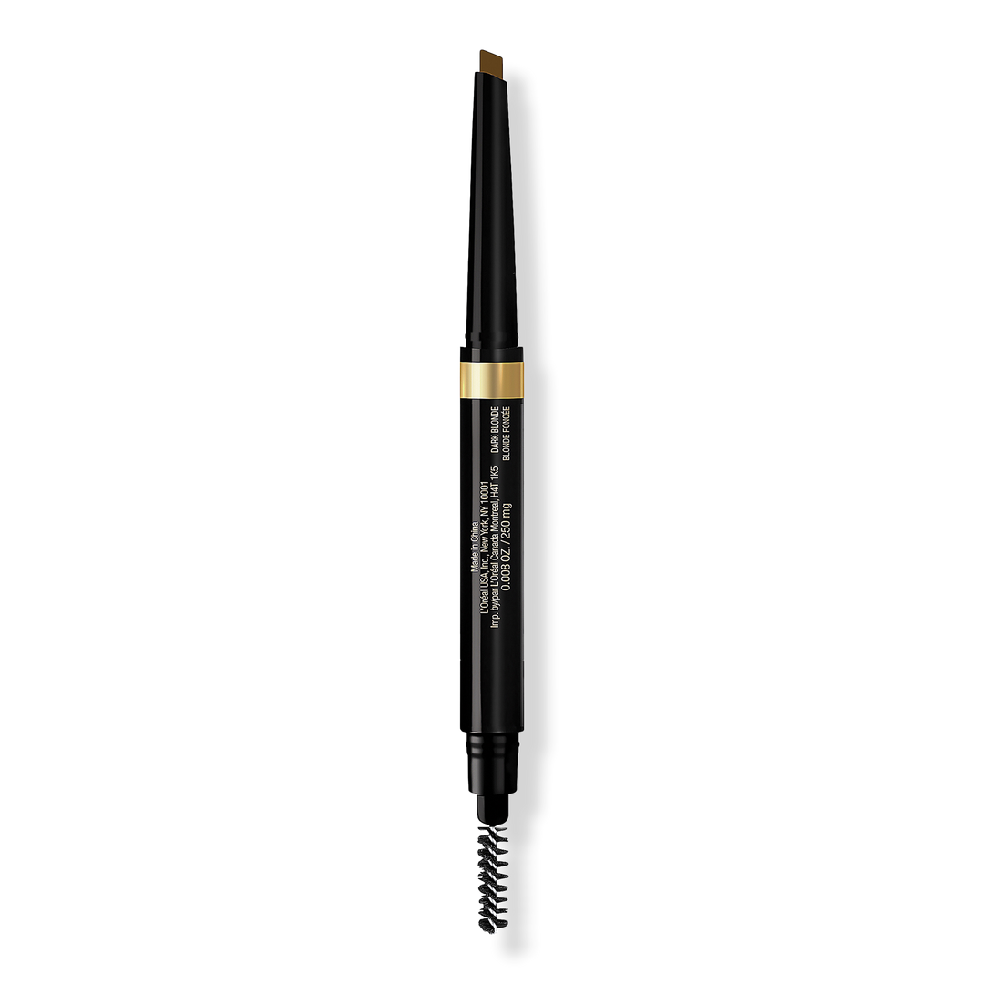 L'Oréal's Brow Stylist Shape and Fill Pencil is a 3-in-1 mechanical pencil with spoolie. The triangular tip precisely outlines, shades, and fills brows.