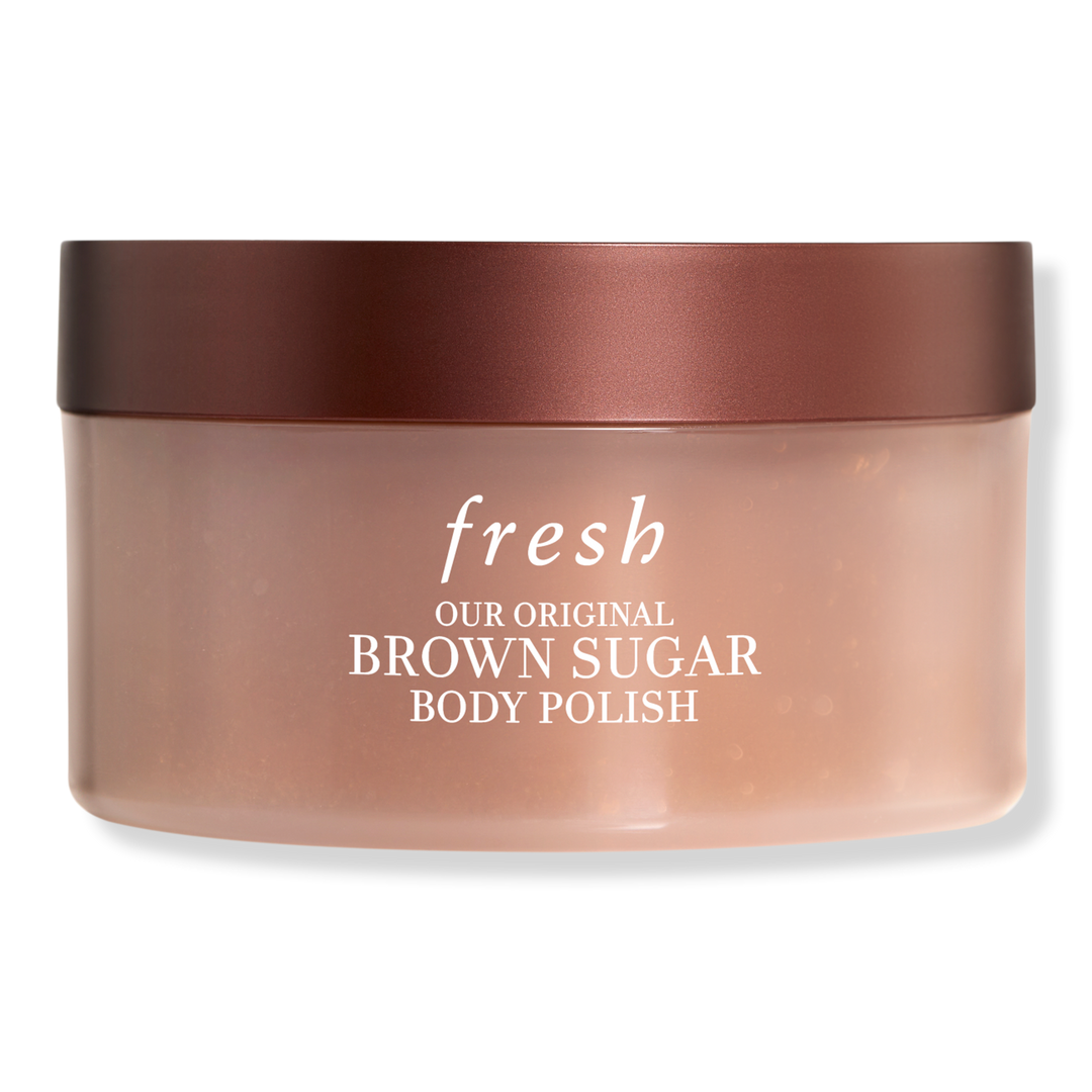 Fresh's Brown Sugar Body Polish Exfoliator is an award-winning sugar scrub that gently buffs skin while delivering 24-hour moisture and nourishing with precious oils.