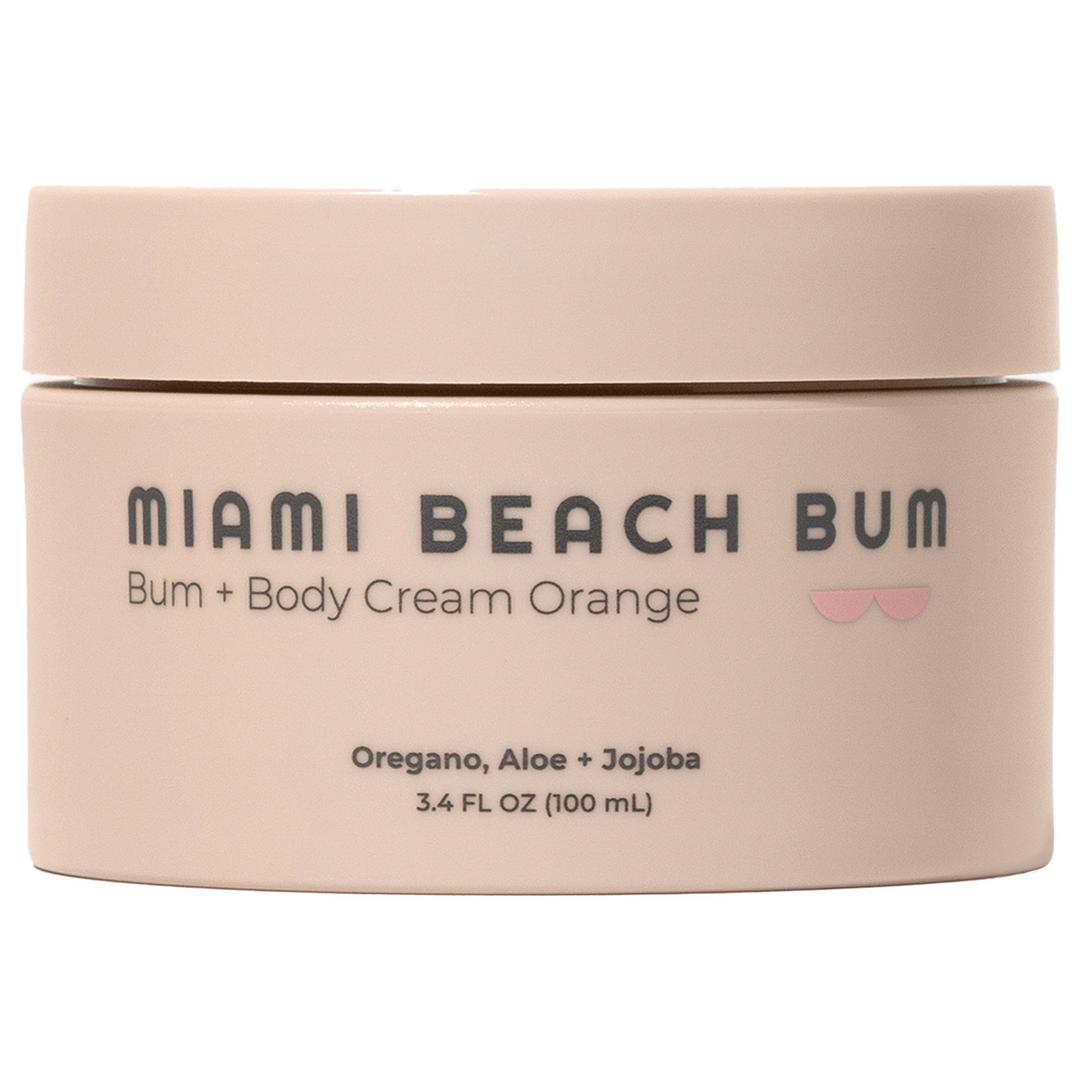 Miami Beach Bum, Bum + Body Cream clears body breakouts while deeply hydrating. Oregano & aloe balance your microbiome, calm irritation, and target irritations like razor burn & folliculitis for visibly smooth and bump-free skin.