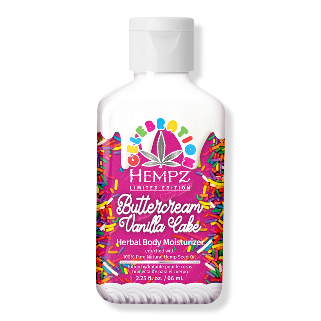 Buttercream Vanilla Cake Herbal Body Moisturizer. It's Time to Celebrate! Get your sweet fix with Hempz's Celebration Collection!