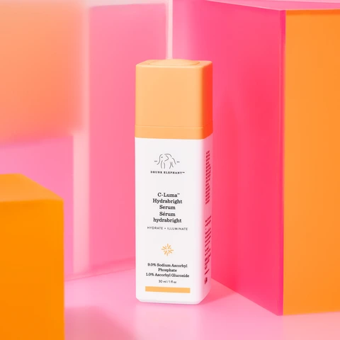 Drunk Elephant's C-Luma Hydrabright Gentle Vitamin C Serum is a unique 10% vitamin C serum that brightens, clarifies, and hydrates skin, revealing a noticeably more even and luminous complexion.