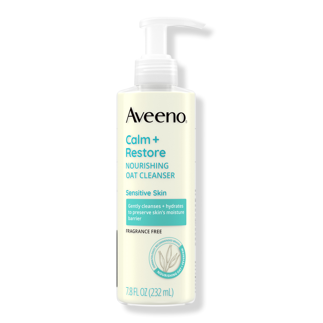 Gently cleanse and hydrate skin with Aveeno Calm + Restore Nourishing Oat Facial Cleanser. The face wash for sensitive skin is hypoallergenic, non-comedogenic and contains nourishing oat and calming feverfew.