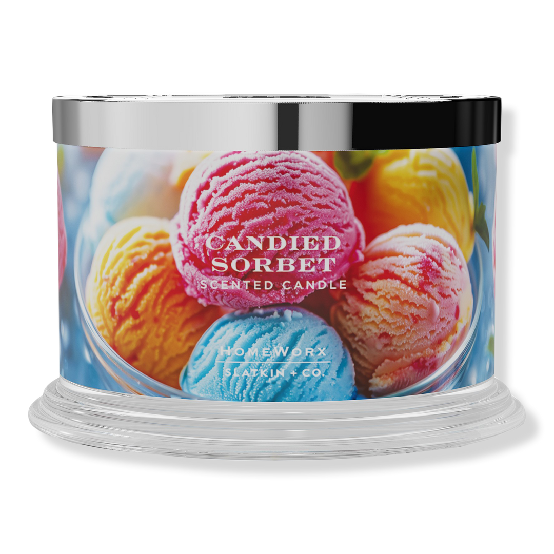 HomeWorx by Harry Slatkin Candied Sorbet 4-Wick Scented Candle fills your home with the finest luxury fragrance ambiance.