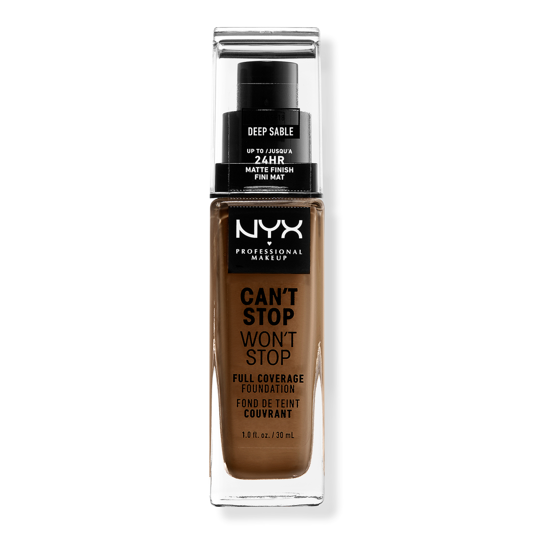 Lightweight, waterproof & transferproof, NYX Professional Makeup Can't Stop Won't Stop Full Coverage Foundation in many shades hustles as hard as you do.