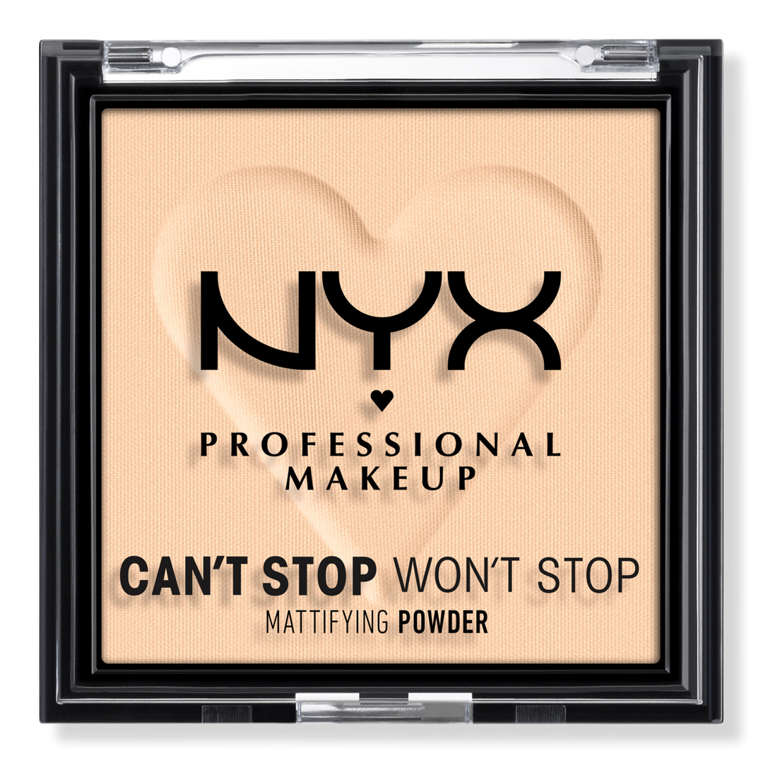 Shine & Texture? Instantly muted with NYX Professional Makeup Can't Stop Won't Stop Mattifying Powder that leaves skin ultra-matte & minimizes oil & shine.