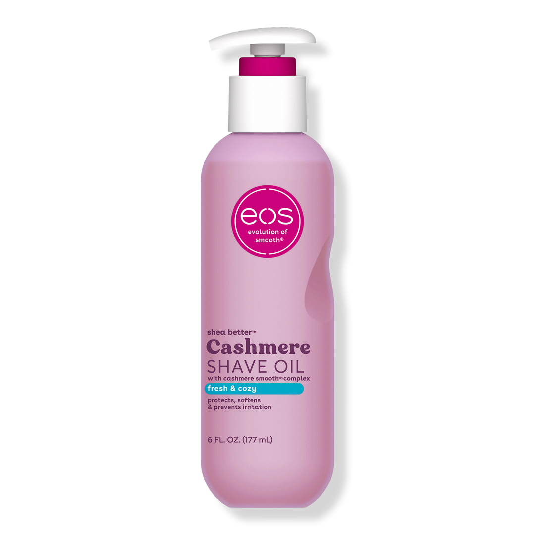 EOS Cashmere Shave Oil luxuriously protects skin from irritation and razor burn while delivering a smooth, protective shave. Formulated with penetrating oil moisture to replenish and soothe as you shave and is incredibly gentle for a total body shave, even entire bikini area-approved!