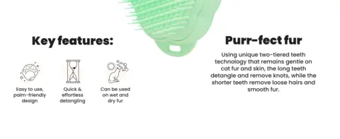 - Using Pet Teezer's unique, two-tiered teeth technology that’s gentle on your cat’s fur and skin, the long teeth gently detangle and remove knots, while the shorter teeth remove loose hairs and smooth the fur.