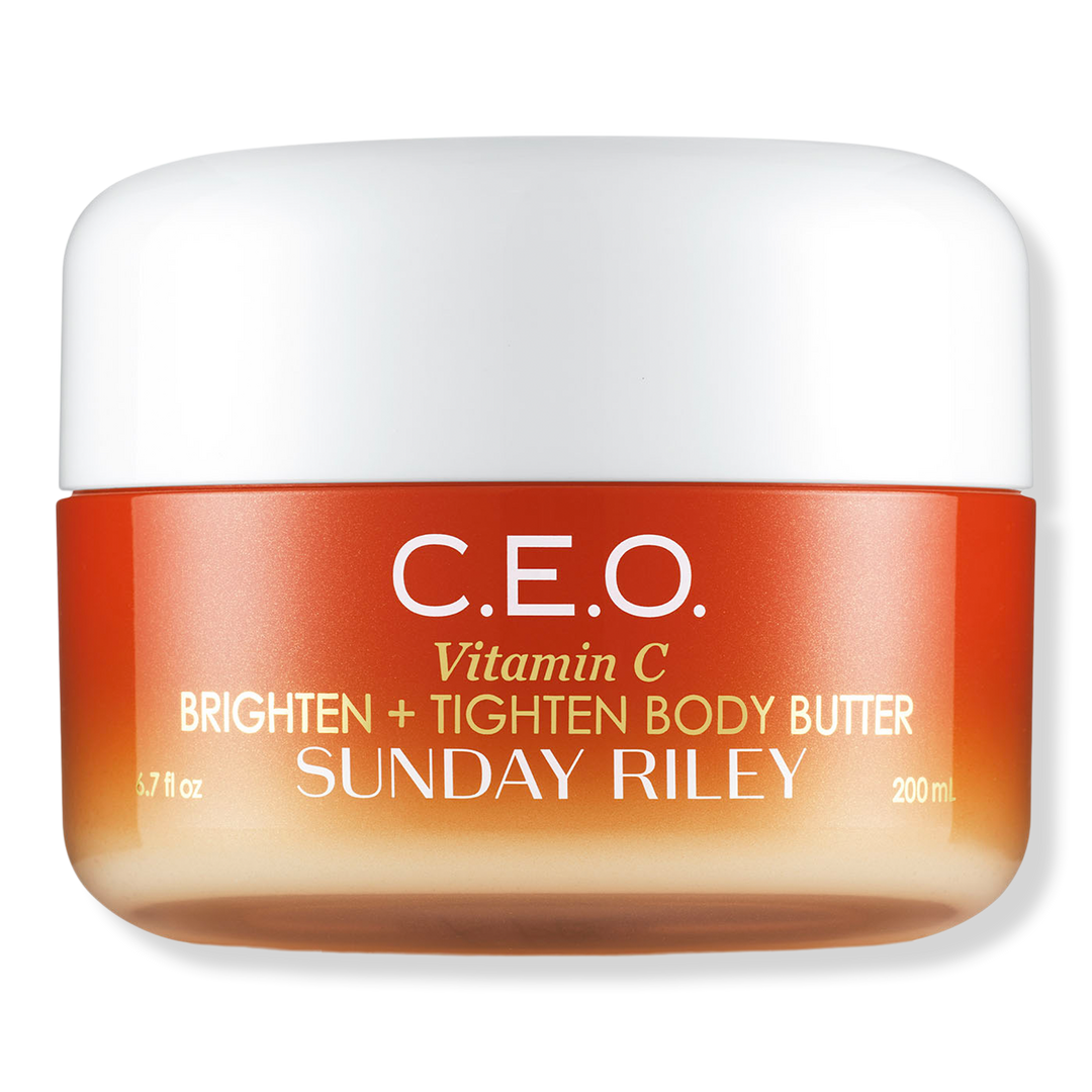 SUNDAY RILEY CEO Brighten & Tighten Body Butter hydrates and repairs thirsty skin with luminous deep moisture and brightening, firming Vitamin C.