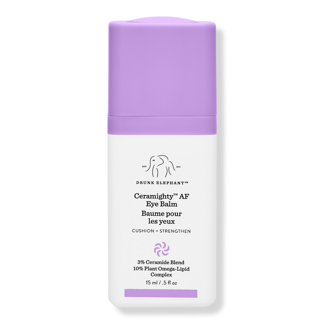 Drunk Elephant's Ceramighty AF Eye Balm is a cushiony, deeply replenishing eye cream with strengthening ceramides and omega-rich plant oils that delivers long-lasting moisture, restores elasticity, and soothes signs of fatigue for a refreshed, well-rested look.